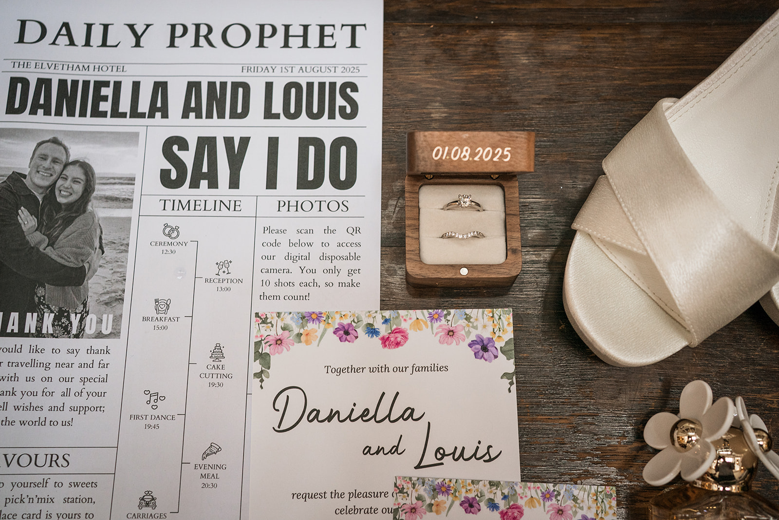After years of growing together, Louis proposed to Daniella in August 2023 while they were staying with her South African family in Cape Town. On a beach walk, under the pretence of looking for shells, Louis surprised Daniella by presenting her with “the shiniest gem of them all” — a moment filled with emotion, laughter and meaning, made even more special by having family close by.
