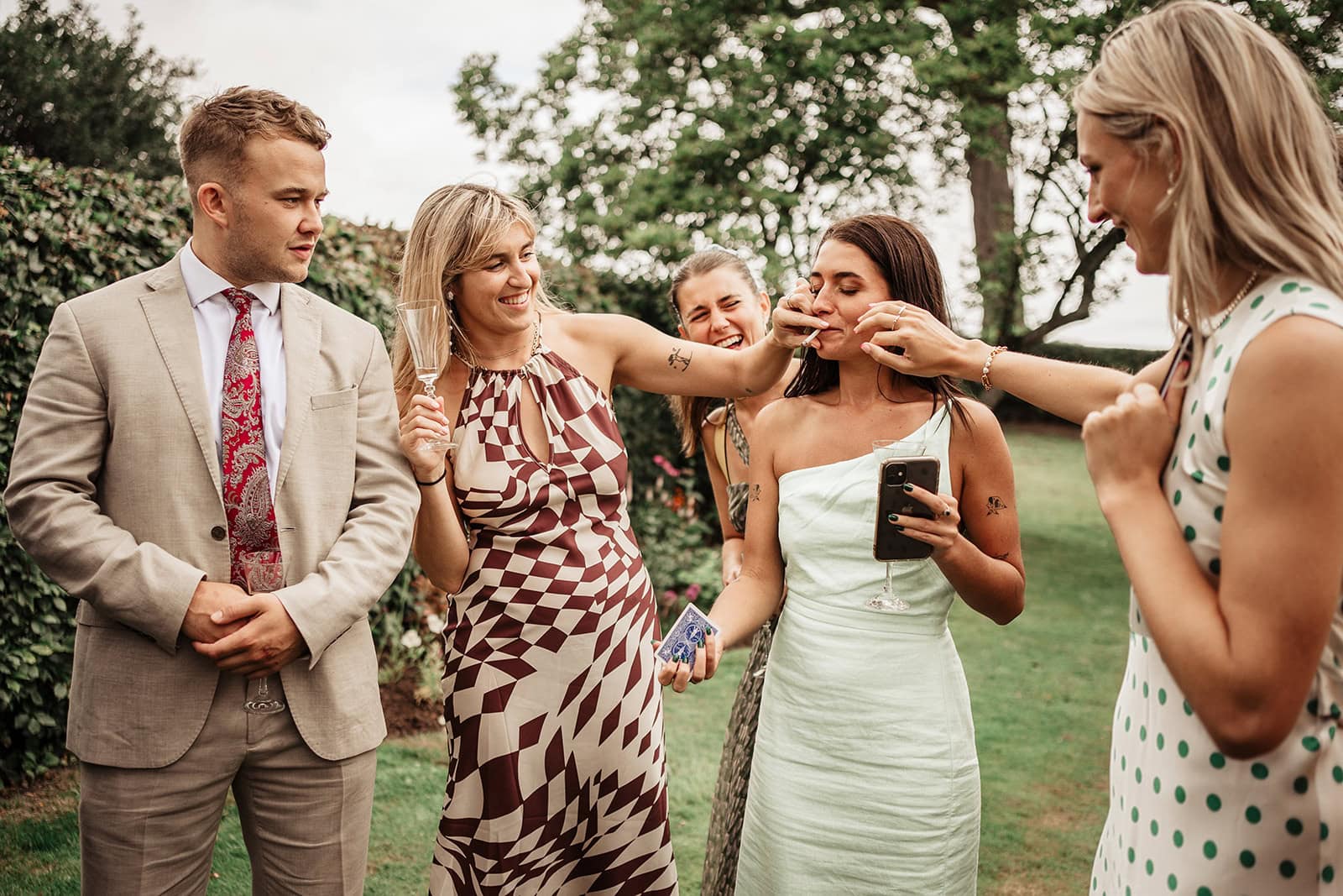 George had always known exactly where he wanted to propose: the riverbank in Scotland. After telling Anna’s mum his plans back in February, he went ring shopping with Anna’s cousin (and bridesmaid), Ellie — and then hid the ring in their bedroom for three long months. When Anna picked him up from the airport, he suggested heading straight to the river for a quiet drink and managed to convince her they should go on ahead of the others because of her bad knee. Anna chose to sit on the rocks by the water, forcing George into an awkward little detour so he could get down on one knee. Moments later, her family appeared with champagne and nibbles, making the moment even more special.